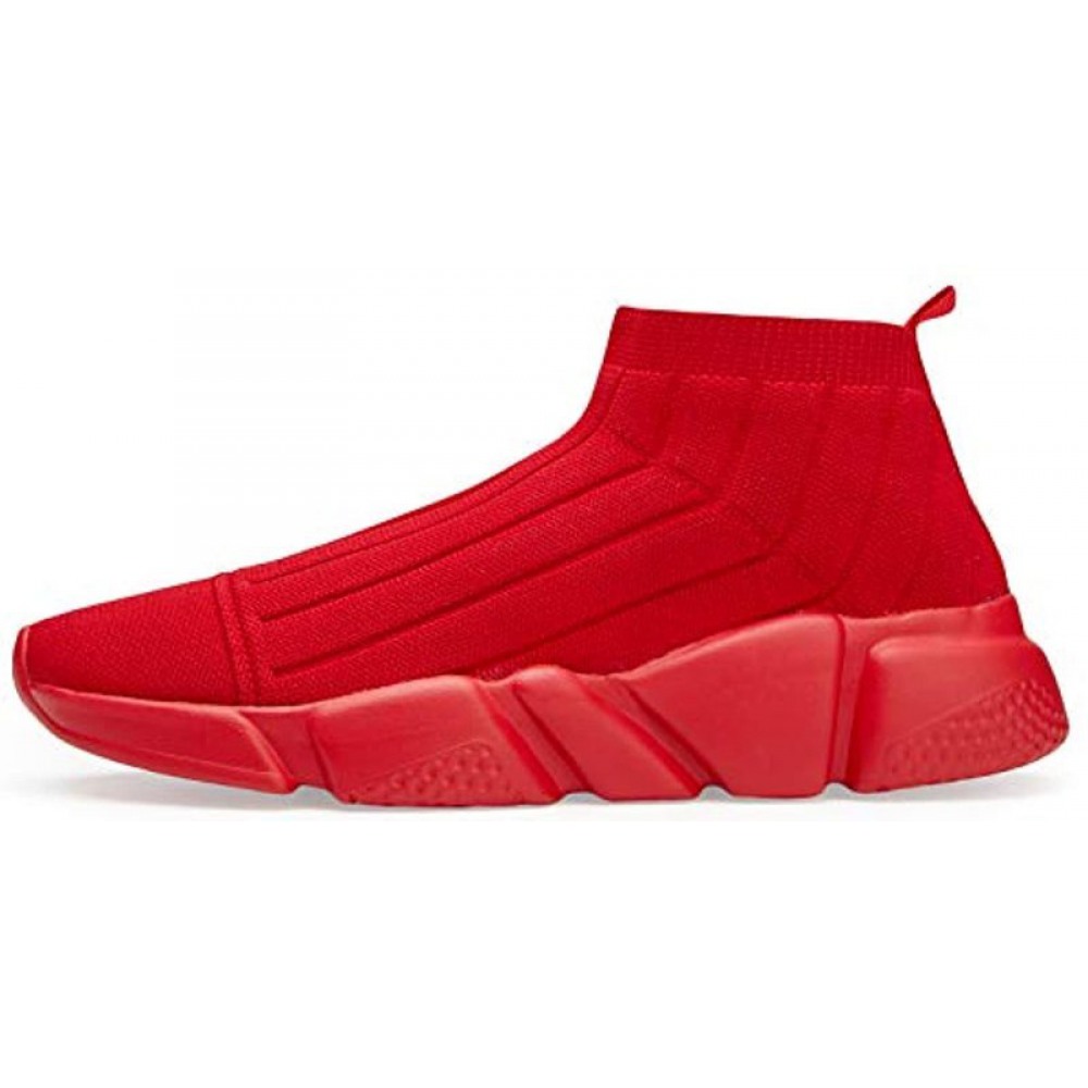 Men's Running Shoes Breathable Knit Slip On Sneakers Lightweight Athletic Shoes Casual Sports Shoes High Top All Red