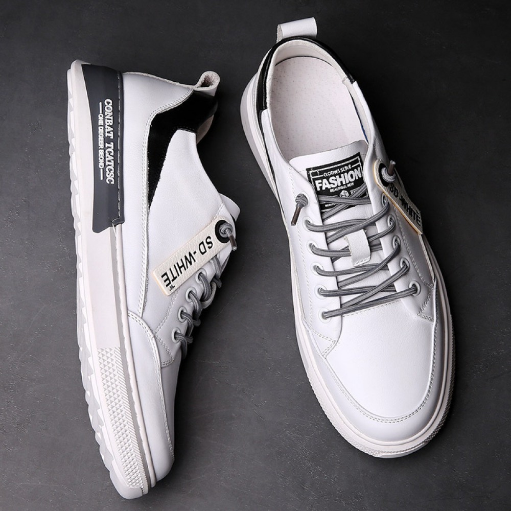 Men's Leather White Shoes New Autumn Casual Shoes Mens Trend Sports Shoes