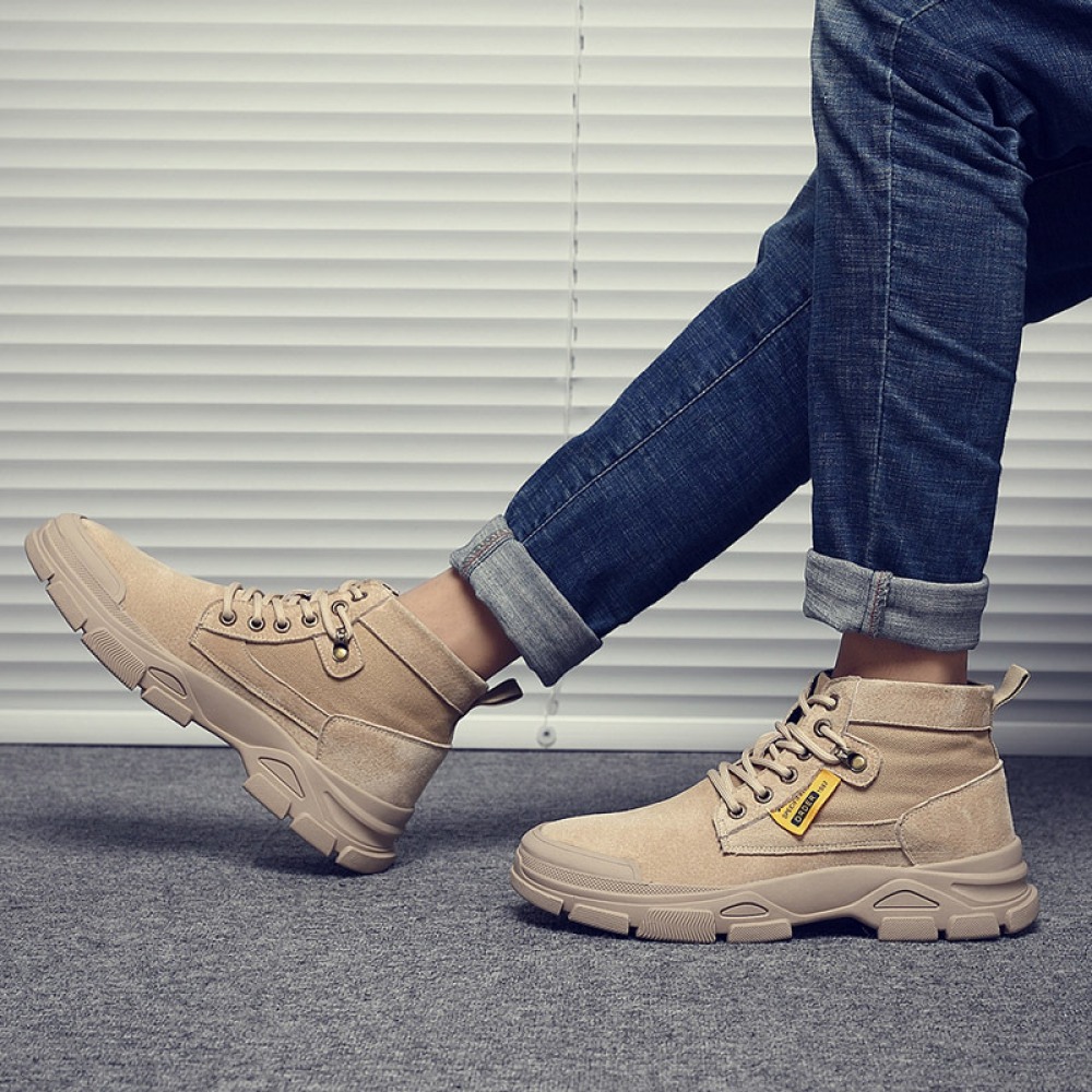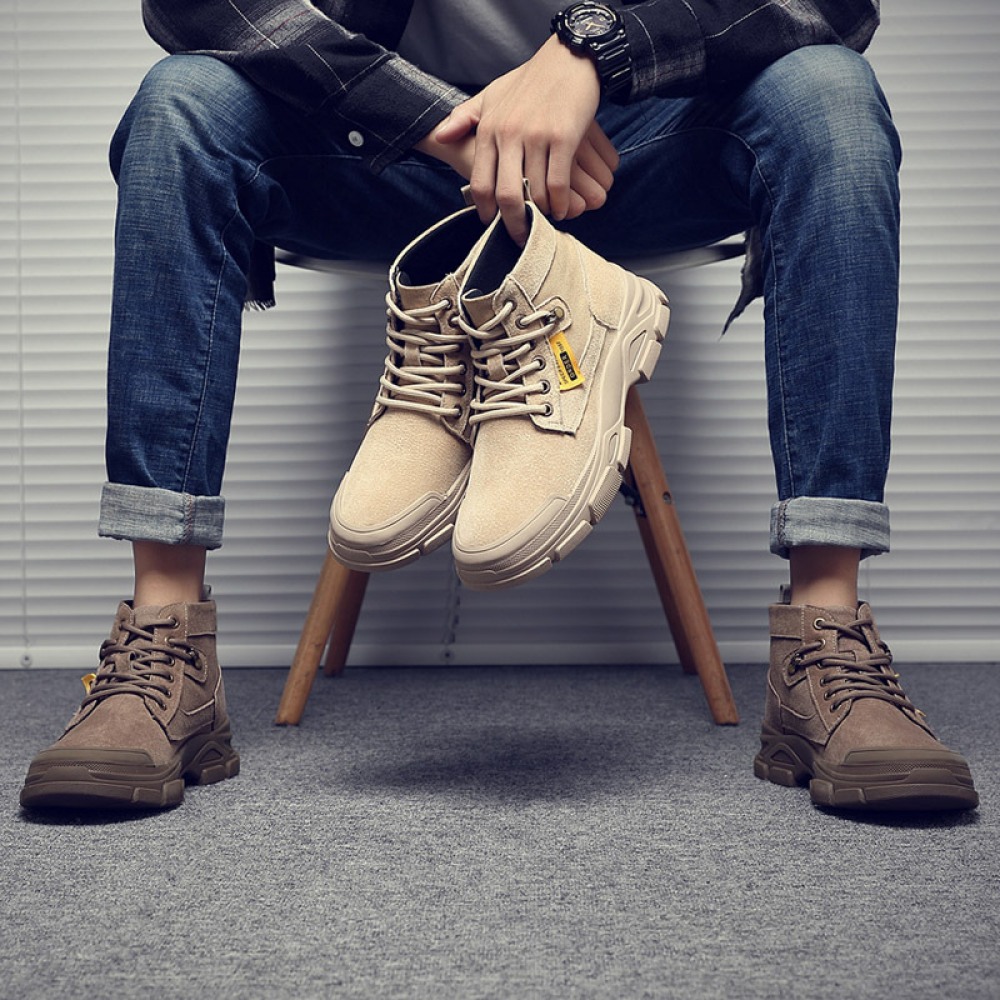 Men's Shoes Autumn and Winter New High-Top Boots Trend Tooling Military Boots British Martin Boots Men's Trendy Mid-Top