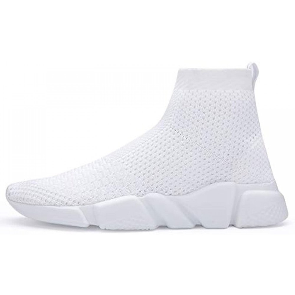 Men's Running Shoes Breathable Knit Slip On Sneakers Lightweight Athletic Shoes Casual Sports Shoes High Top White