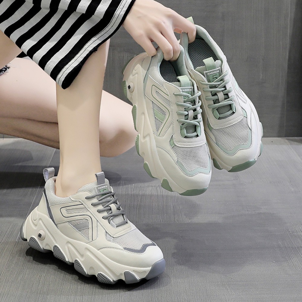 Women's Autumn New Casual Sports Shoes Mesh Breathable Thick Sole Height-Increasing Shoes Summer Trendy Sneakers