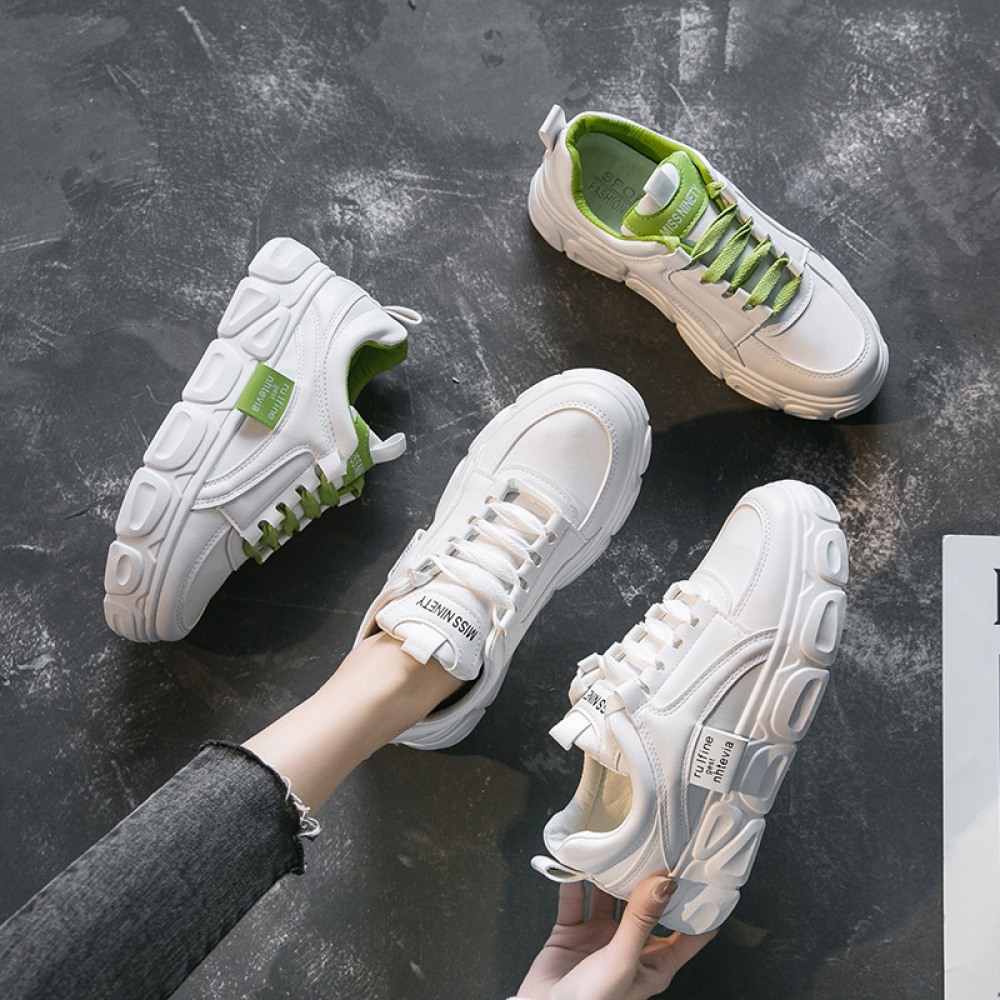 Spring New White Shoes Female Student Running Board Shoes Women Heightened Casual Shoes Breathable