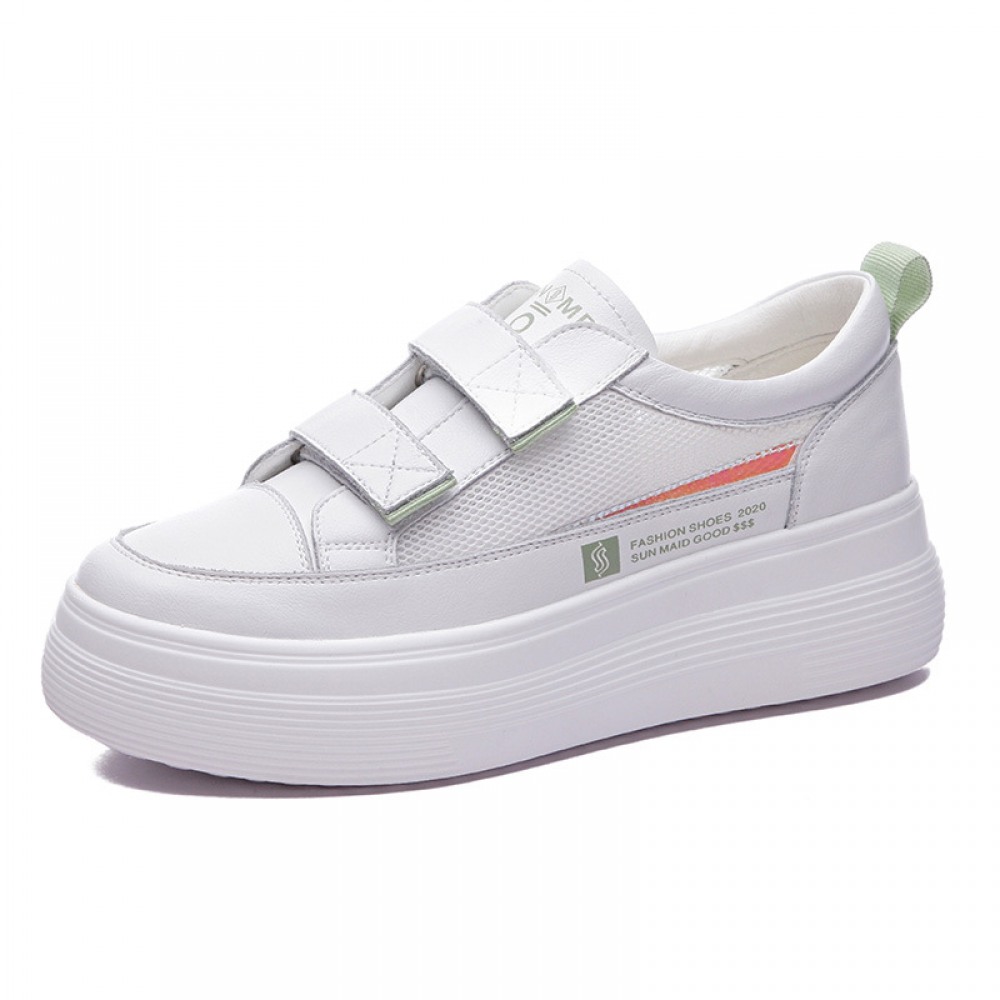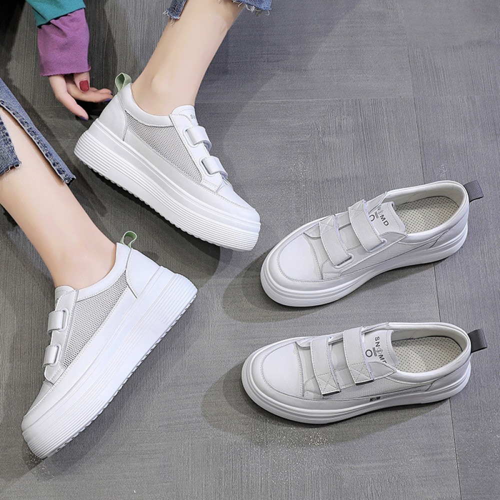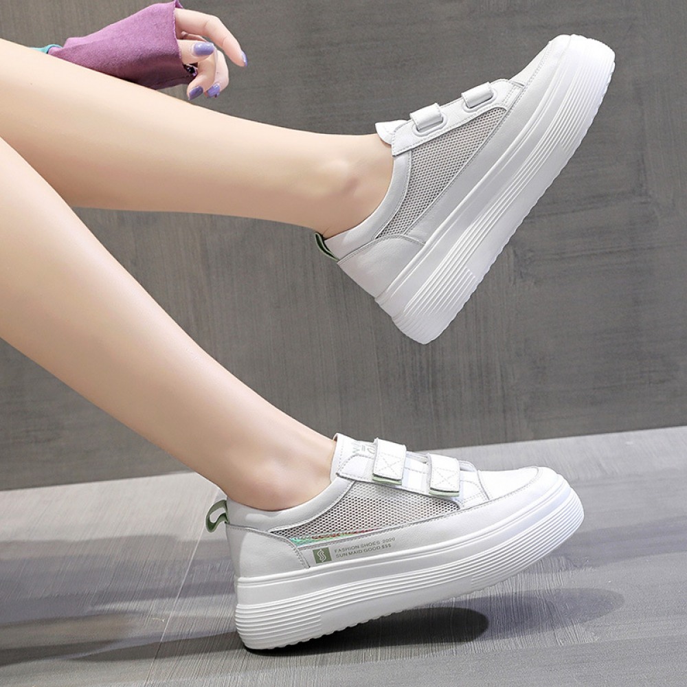 White Shoes Women's Spring New Flat-Bottom Heightening Shoes Thin Casual Hollow Breathable Shoes
